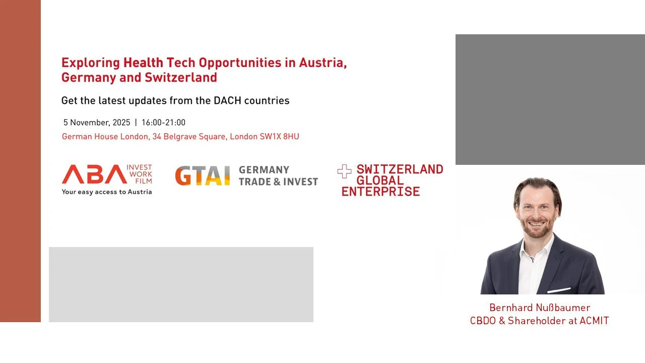 Bernhard Nussbaumer (CBDO & Shareholder at ACMIT) will represent ACMIT at the event and contribute his expertise during the panel discussion on MedTech opportunities and challenges.