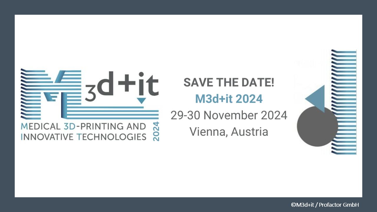 The 7th M3d+it (Medical 3D Printing and Innovative Technologies) conference will take place on November 29 and 30, 2024 at the Medical University of Vienna/Vienna General Hospital in the beautiful Austrian capital.