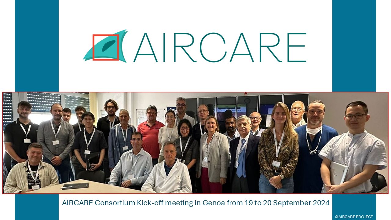 The AIRCARE consortium includes twelve partners from six countries. The project is coordinated by the Italian Institute of Technology. Key participants include the Fondazione Istituto Italiano di Tecnologia (Italy), KU Leuven (Belgium), Syddansk Universitet (Denmark), Scuola Superiore Sant’Anna (Italy), Università degli Studi di Genova and San Martino Hospital (Italy), IDIBAPS (Hospital Clínic de Barcelona, Spain), El.En. SpA (Italy), BARCO NV (Belgium), ACMIT Gmbh (Austria), Inventya Ventures (Ireland), TimeLex (Belgium), and Università degli Studi “Gabriele d’Annunzio” (Italy).